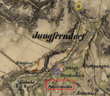 50 m jižně od kostela sv. Jáchyma v Kobylé