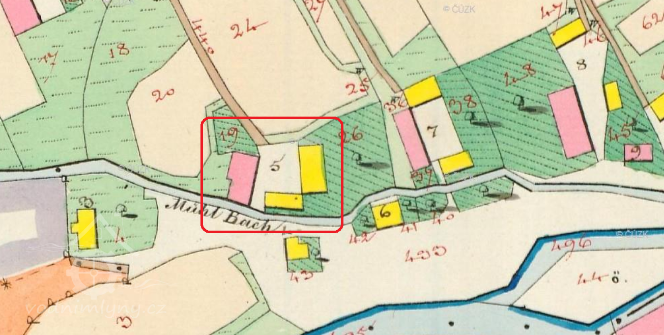 Popis1930: 1 kolo na svrchní vodu, hltnost 0,32 m3/s, spád 3,5 m, výkon 9,6 HP