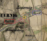 Zaniklý mlýn, dříve olejna, na jeho místě dnes garáže.