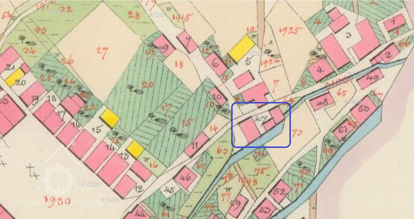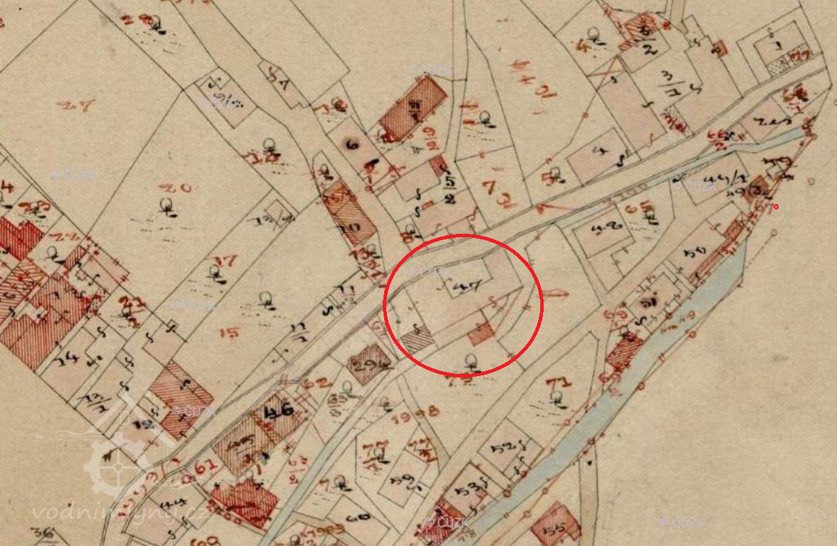 Popis1930: 1 kolo na svrchní vodu, hltnost 0,175 m3/s, spád 5 m, výkon 7,6 HP