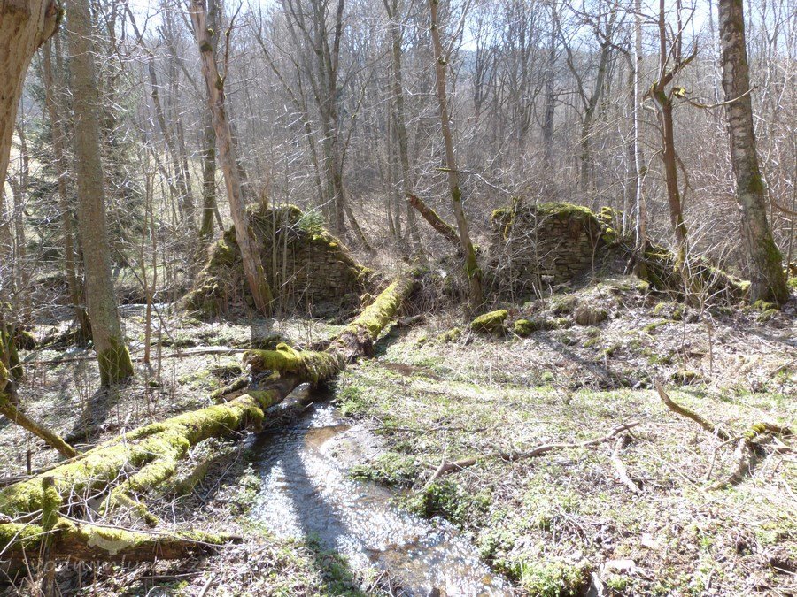 Na leteckém snímku z roku 1957 lze vidět pouze zarostlou ruinu mlýna.