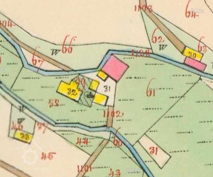 Popis1930: 1 kolo na svrchní vodu, hltnost 0,79 m3/s, spád 5,7 m, výkon 4,14 HP