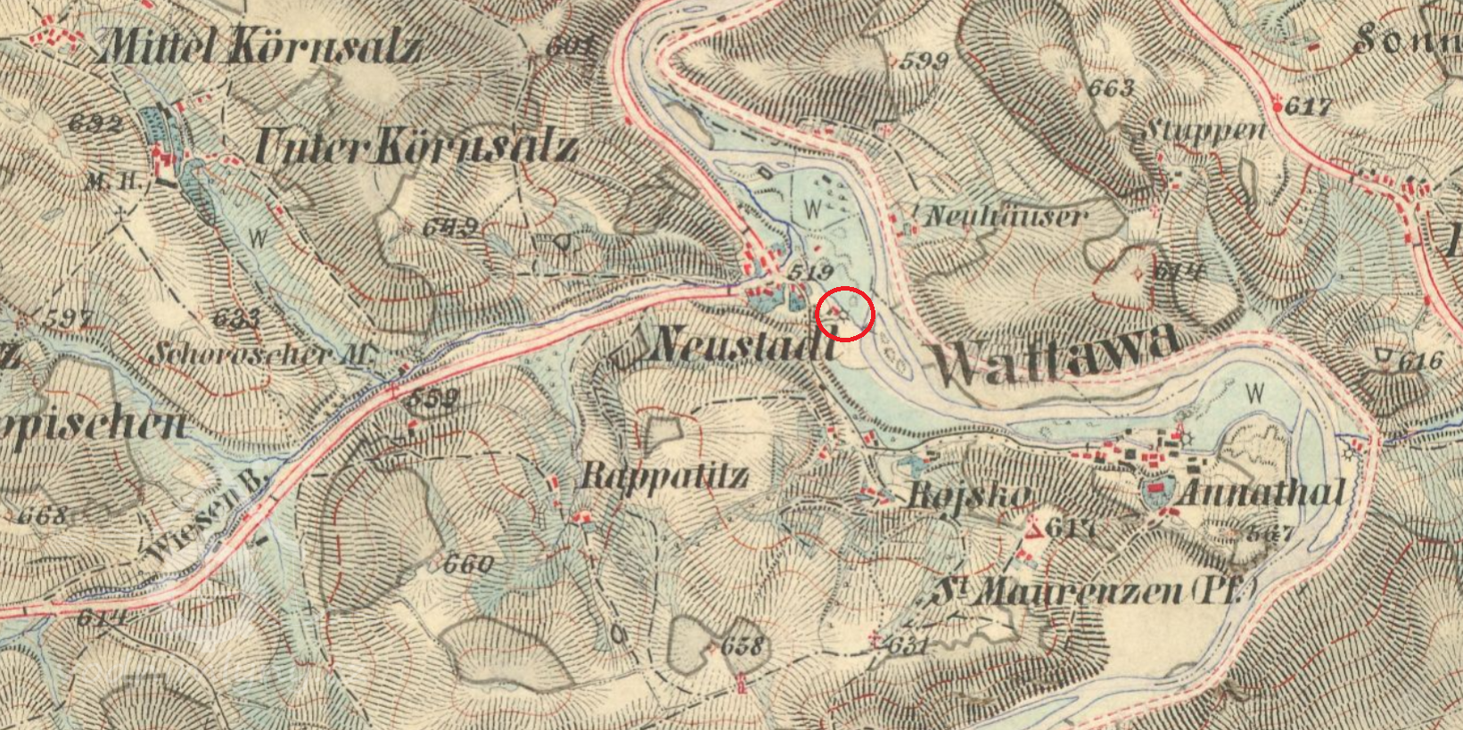 --Johann, nar. 1827, po otci mistr mlynářský v Novém Městečku, se oženil v roce 1848 na Mouřenci s Annou roz. Hofmann 1827 v Rapaticích - zemřelou roku 1849 ve mlýně (dcerou Johanna Hofmanna, sedláka z Rapatic čp. 2 a Anny roz. Schneider,selské dcery z téže osady). Jejich dítě: Johann 1849-1850.