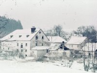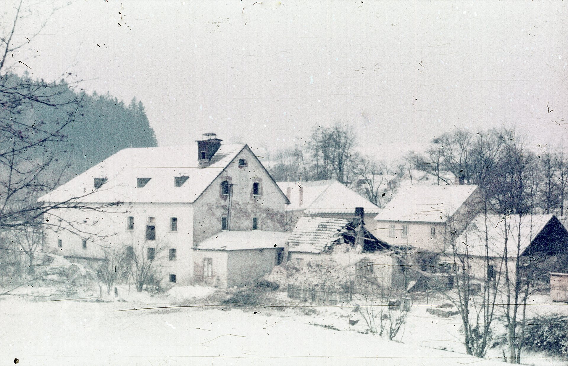 Pod hrází Jezdovického rybníka se nacházela budova mlýna ještě v 80. letech 20. století.