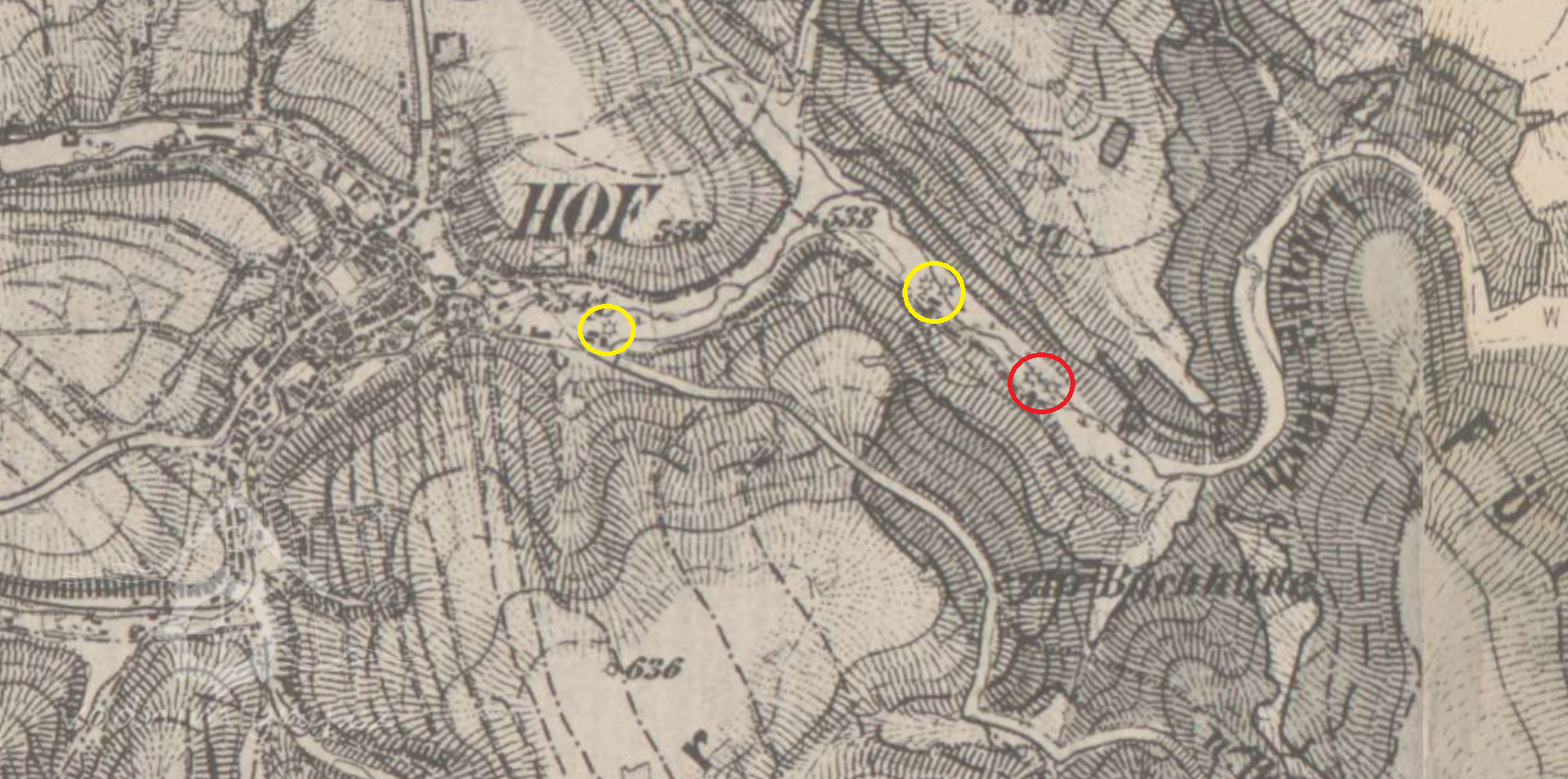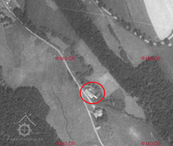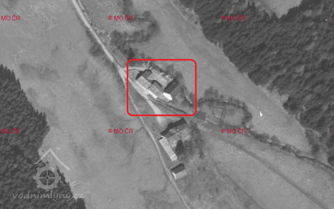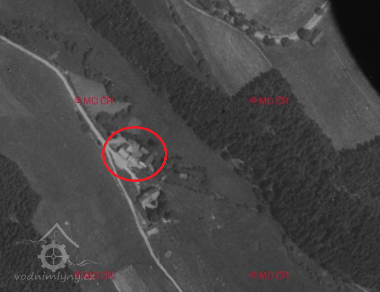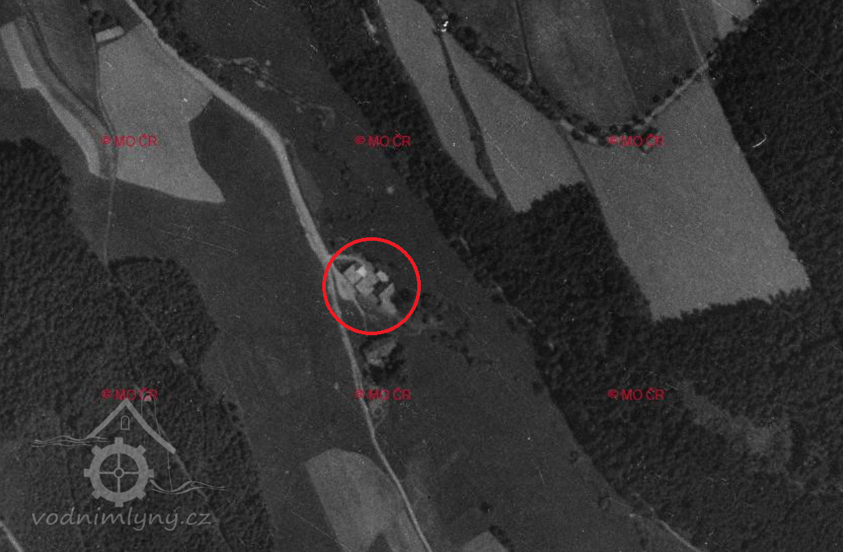 Zaniklý mlýn v sousedství novějšího, dnes rovněž zpustlého statku.