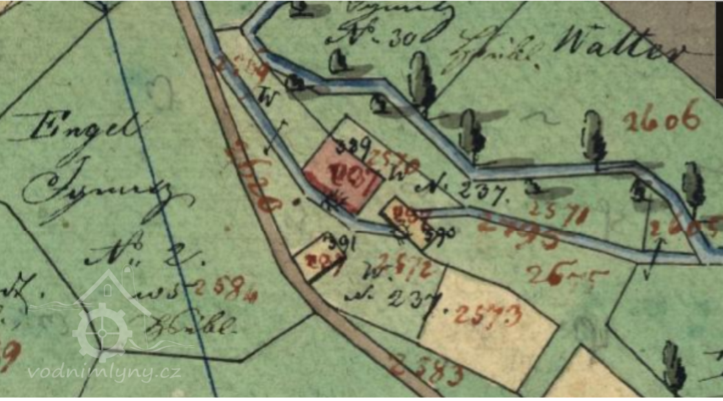Popis1930: 1 kolo na svrchní vodu, hltnost 0,14 m3/s, spád 2,55 m, výkon 3,3 HP