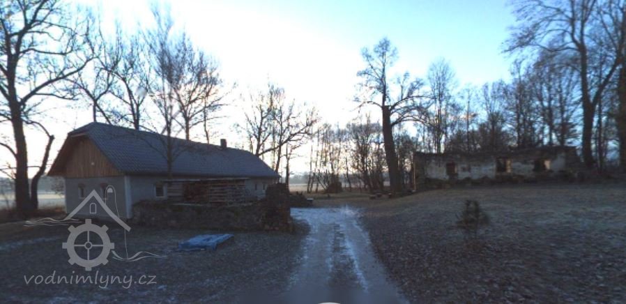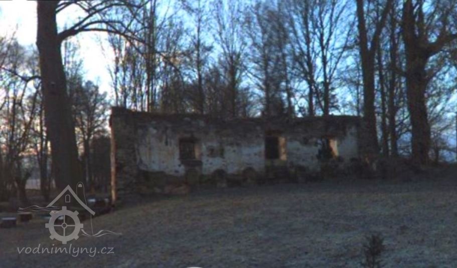 - PO zrušena 1) obytné stavení s mlýnicí 2) hospodářský trakt 3) stodola Původně komplex budov seskupených kolem čtvercového dvora, tvořený obytnou částí s mlýnicí na sz. straně areálu, protilehlým hospodářským traktem na východní straně dvora a obdélnou stodolou na jižní straně; průčelí hlavní obytné budovy s mlýnicí spojeno vstupní branou s hospodářským traktem. Voda ke mlýnu byla přiháněla od jihu náhonem na mohutném náspu, který ústil na betonové vantroky a dvojici kol na svrchní vodu (náhon bez památkové ochrany). V současnosti celý areál v rozvalinách (viz. stav zachování). Popis dle stavu v r. 1969: Obytná a někdejší provozní budova jednopatrová, na obdélném půdorysu, o severním dvouosém průčelí, krytá mansardovou střechou. Na bočním dvorním průčelí ve středové ose prostý vchod, z něho přístup do obytné prostory s trámovým stropem, do místnosti s valenou klenbou s lunetami a na schody do patra; v zadní jižní části budovy někdejší mlýnice, v patře rovné stropy. Na průčelí navazovala v pravém úhlu brána s širokým polokruhovým vjezdem, po jeho stranách drobné niky, nad obloukem, téměř v celé šíři brány, posazena nízká atika s kasulovým vykrojením středu, vázou a čučky. Obytné stavení s mlýnicí ze smíšeného zdiva, hospodářské objekty převážně z lomového kamene.