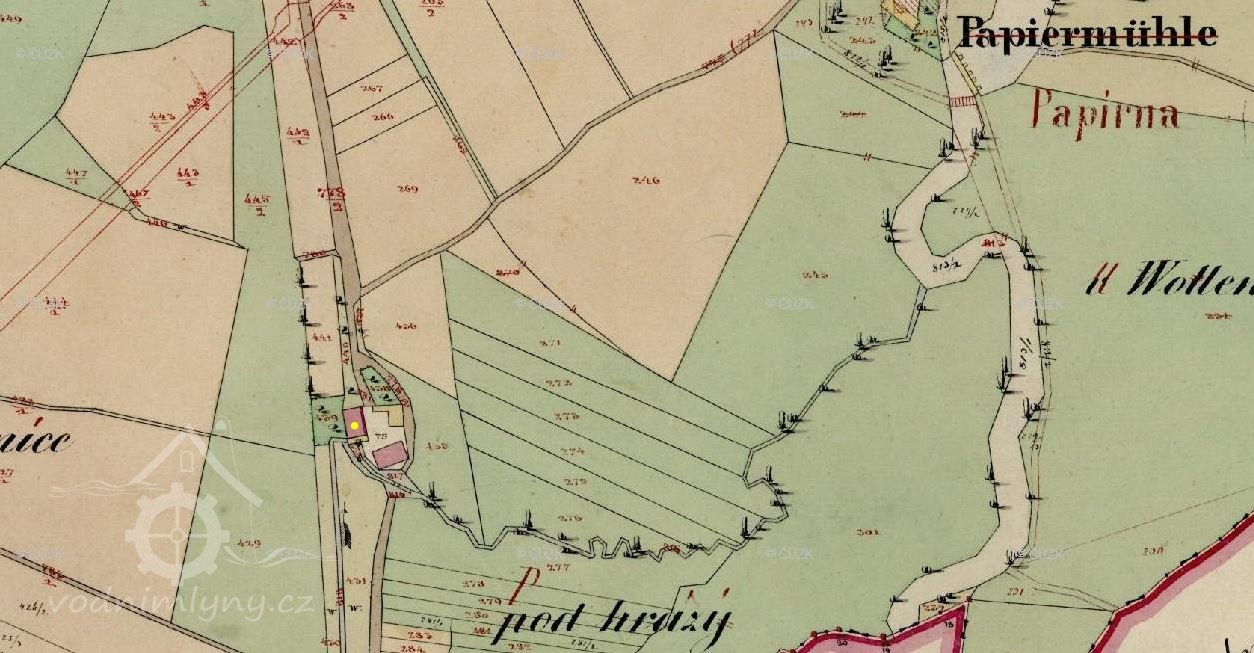Mlýn je zachycen na mapě I. voj. mapování.