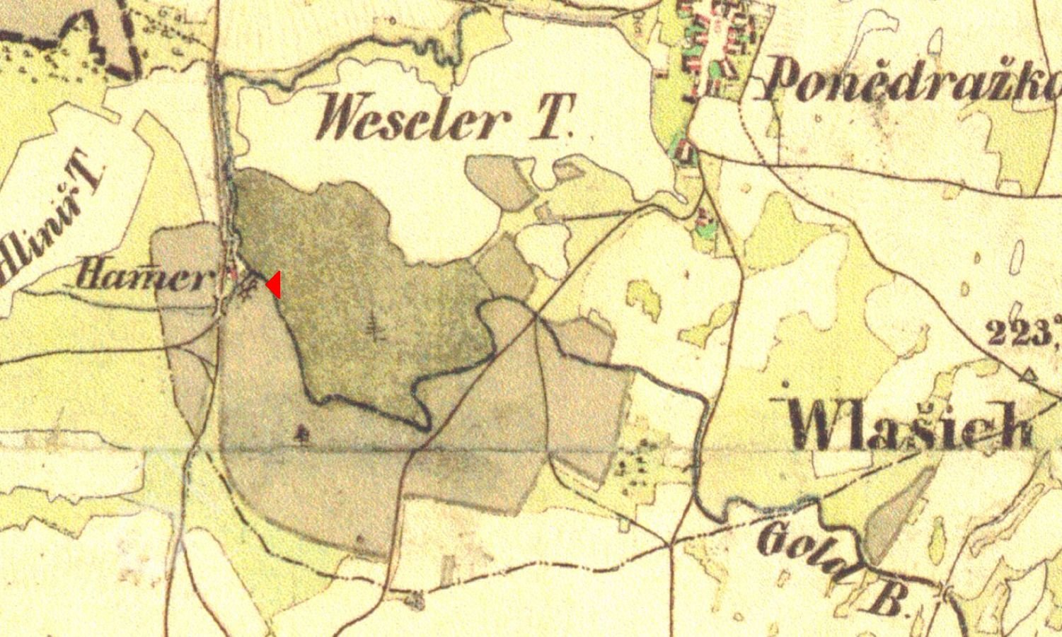 Vražda u Chrta. Roku 1846 (25.6.1845 dle matriky-pep.) byl hamerník Jakub Chrt vylákán v noci domělým cestujícím, by mu ukázal cestu k Veselí. Chrt, ačkoliv byl vždy opatrný, nechal se zlákat a vyšel ven, by cestu ukázal. Několik kroků od mlýna čekali ještě 2 muži, chytli ho a nožem podřezali a šli loupit do mlýna. Ve mlýně s ním bydlela služka, ježto byl svobodný. Tu svázali a ona tanto spoutaná se dobelhala do Ponědrážky by zavolala pomoc, než lidé přišli, byl mlýn úplně vykraden. Tito vrazi byli vypátráni a uvězněni na 20 let. Do nedávna na místě činu byla na kapli, která dosud se tam nalézá, celý výjev vraždy vymalován. Nynější majitel mlýna dal vše zabarviti.