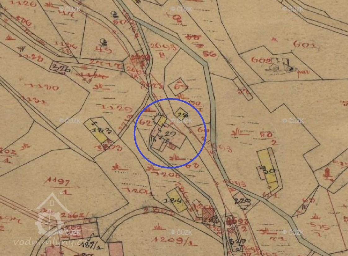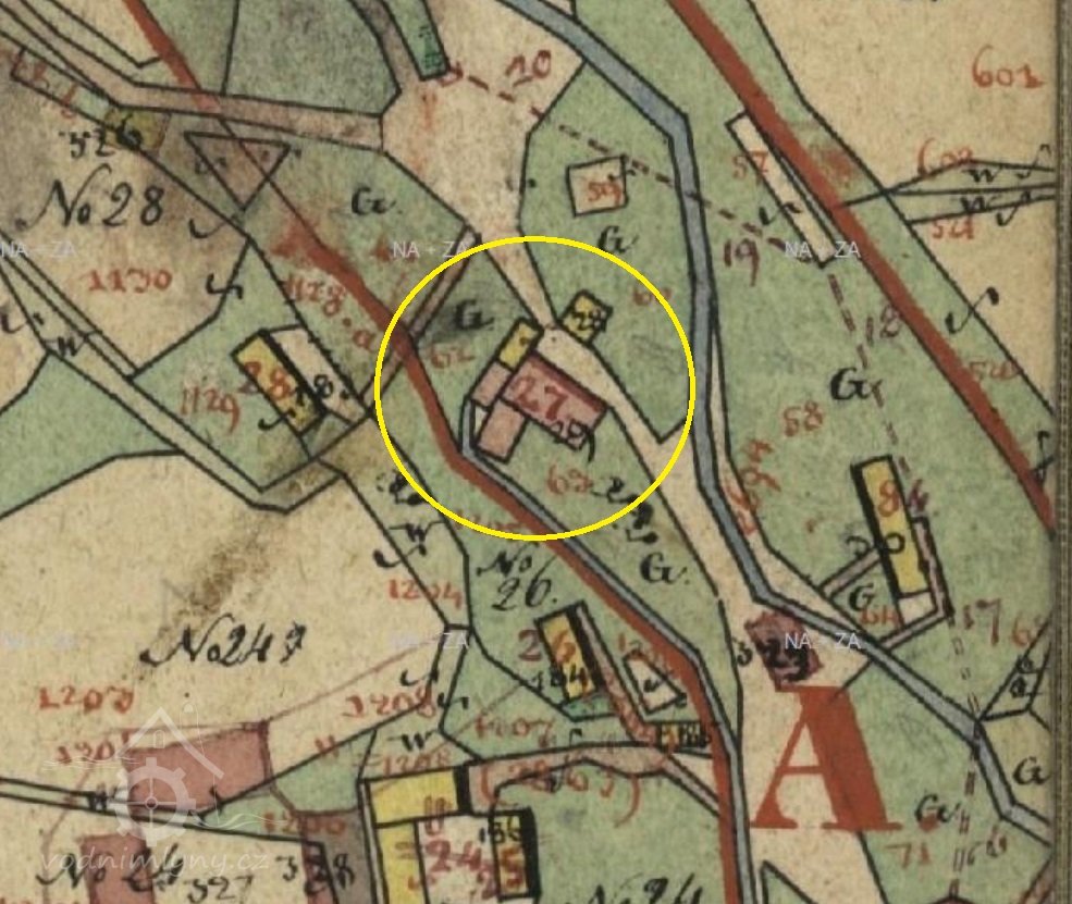 1676 Hesseliův urbář: r. 1623 odkoupil p. opat Johann Benno tento mlýn s jedním mlýnským složením od Georga Dimbtera za 500 kop. Dlouhodobý prospěch. V současnosti je mlynářem Casper Riedel, platí ročně 24 kop poplatků a 6 kop výkrmného.