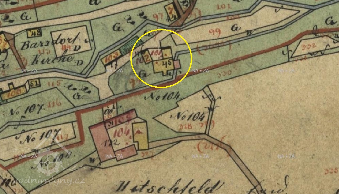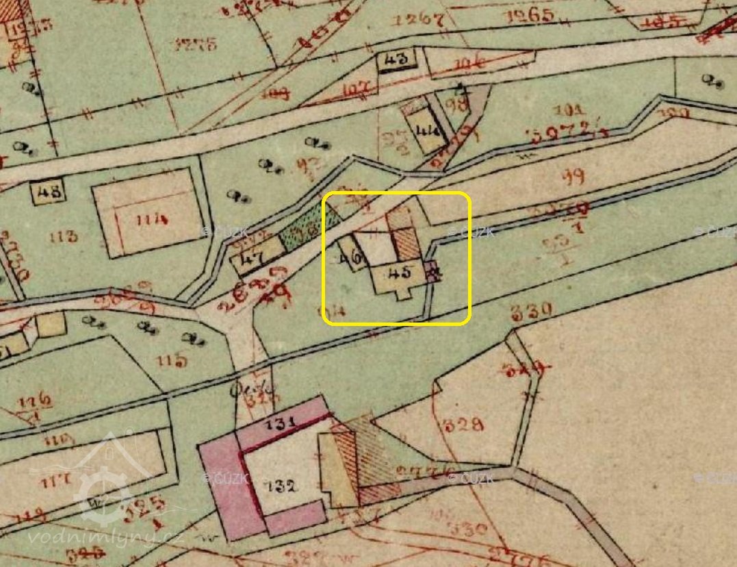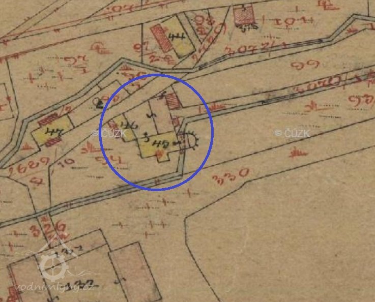 PopisV roce 1930 zde bylo 1 kolo na svrchní vodu, průtok 0,05 m3/s, spád 5.75 m, výkon 3,82 k.