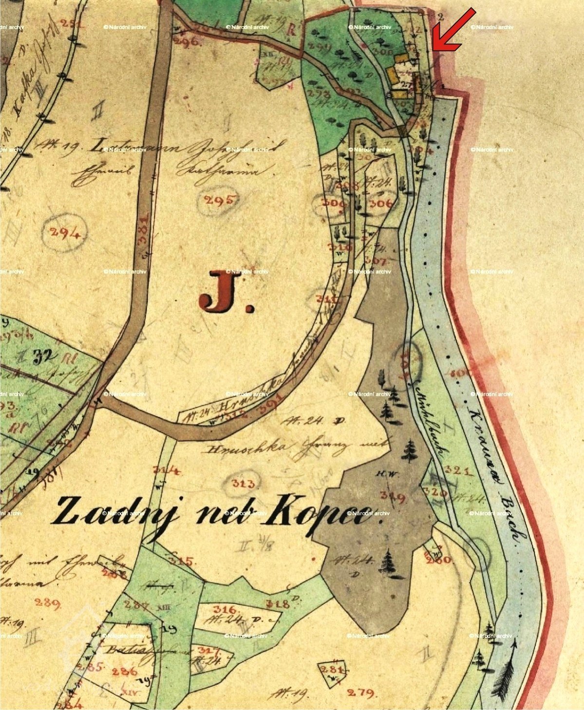 V roce 1930 je zde uváděn v seznamu vodních děl mlynář Josef Junek, mlýn.