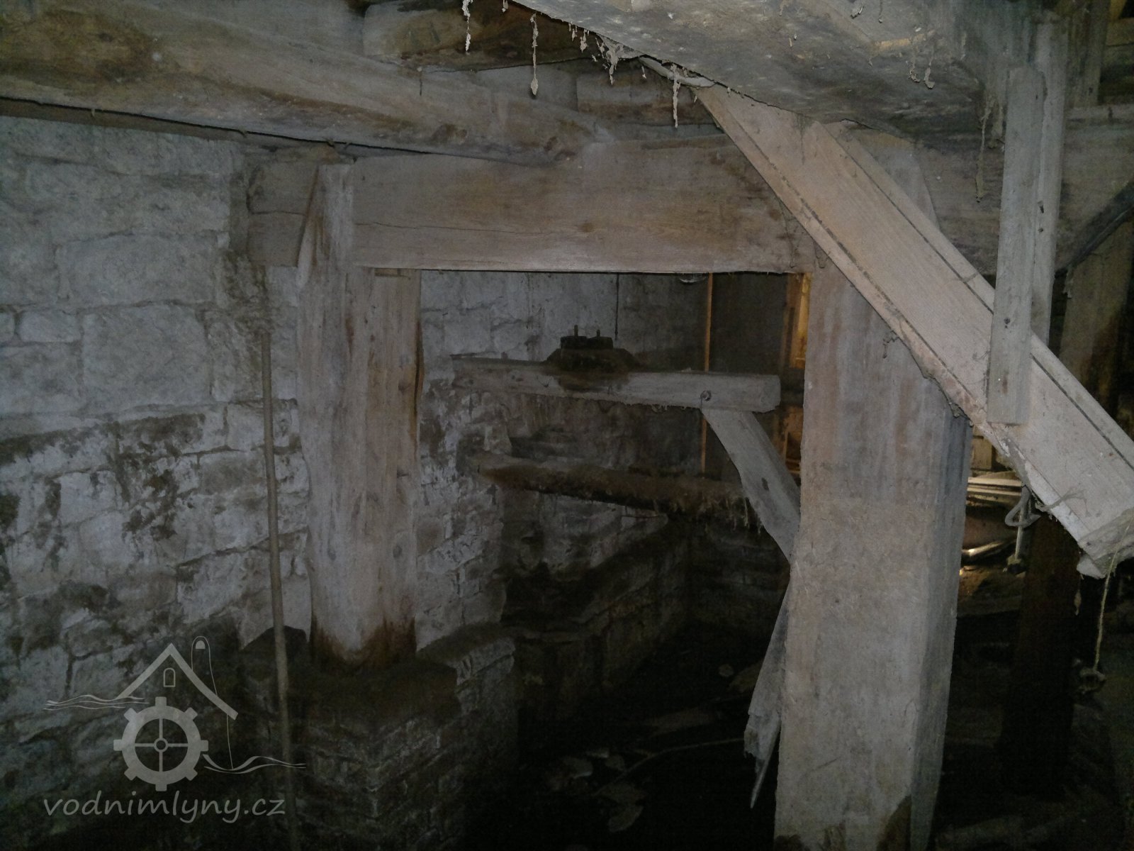 Celodřevěné vodní kolo o diametru přes 4 metry. Dnes není vodní kolo ani hřídel dochovány, hřídelový otvor byl zazděn.