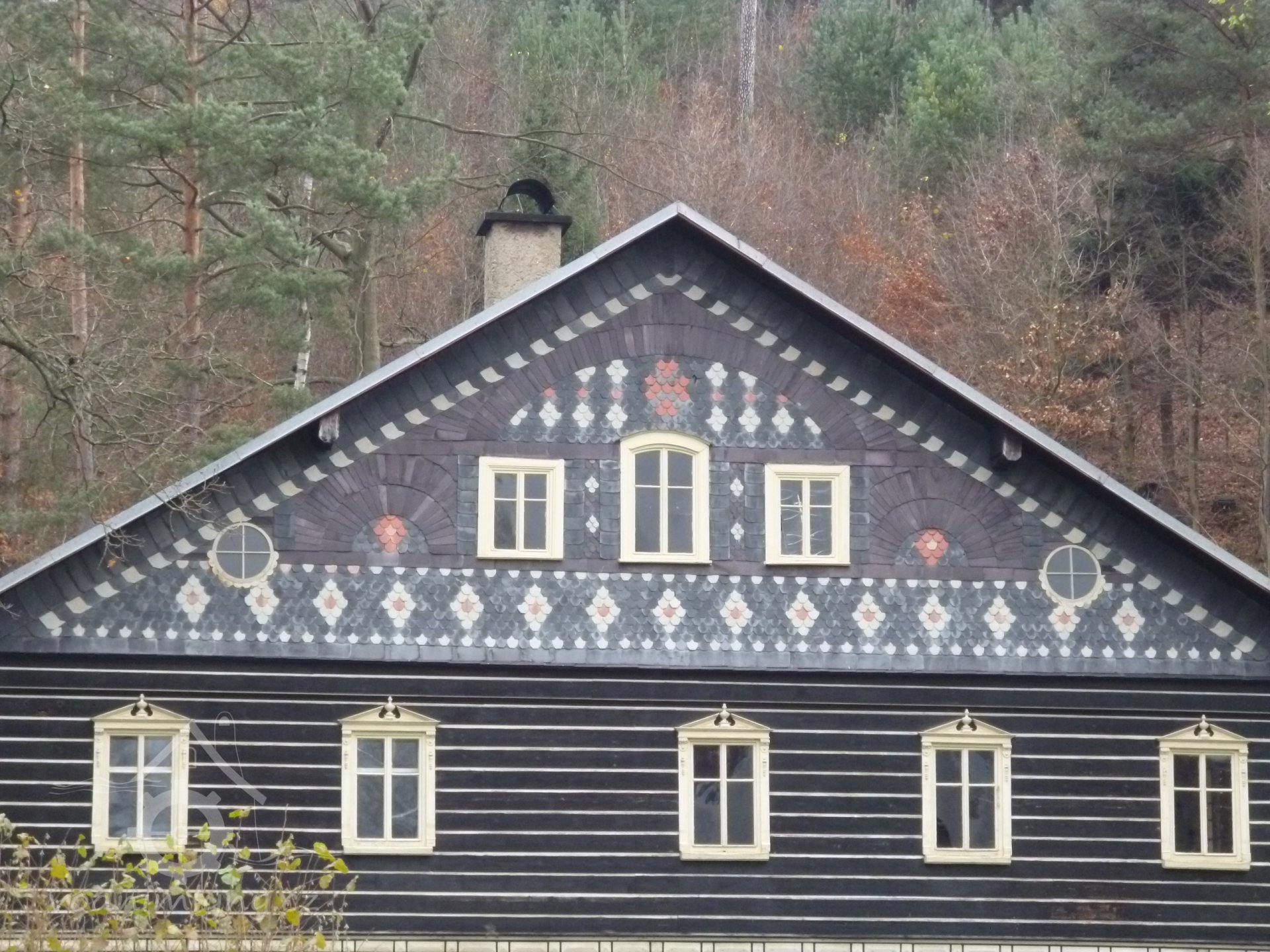 1874 normován - dodnes dochovaná železná skoba s nápisem "I.P. 1874" (Ignác Pech), ukotvená do pískovcového kvádru na severním průčelí při levém nároží.