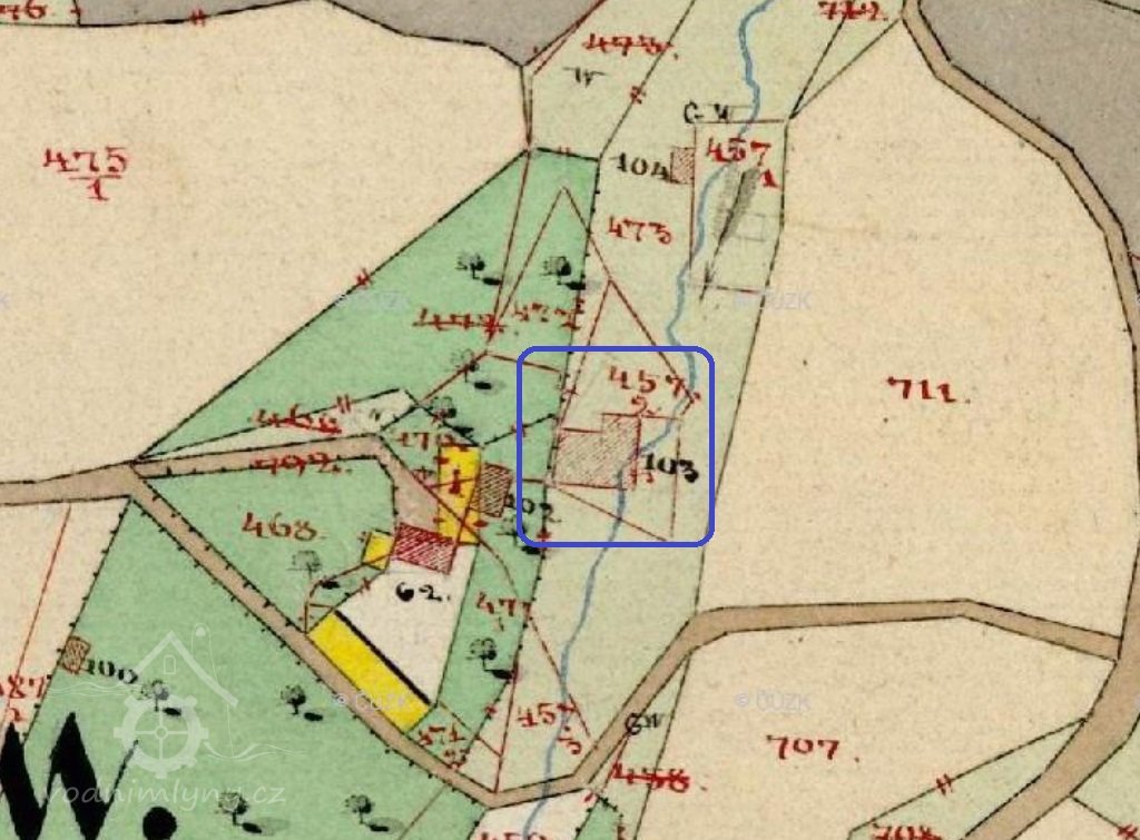 PopisV r. 1930 zde bylo 1 kolo na svrchní vodu, průtok 0,05 m3/s, spád 9,3 m, výkon 4 k.