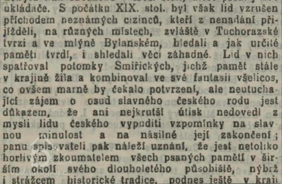 O hledání pokladu v Bylanském mlýně se zmiňuje i článek v Národních listech z r. 1908. (RR)