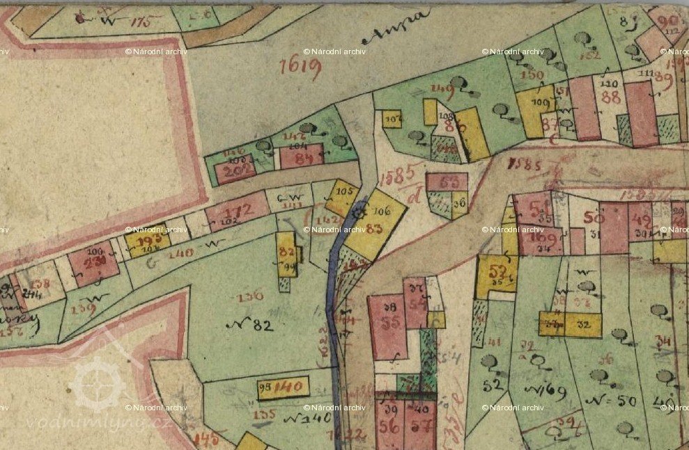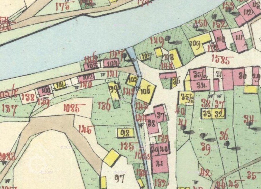 V r. 1930 je psáno jedno kolo na svrchní vodu, průtok 0,102 m3/s, spád 5,1 m, výkon 4,5 k.