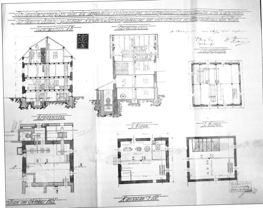 1921 Rudolf Glasauer rozhodl starý mlýn zbořit a vystavit nový amerikán, architekt Wenzl Zellner z Plané