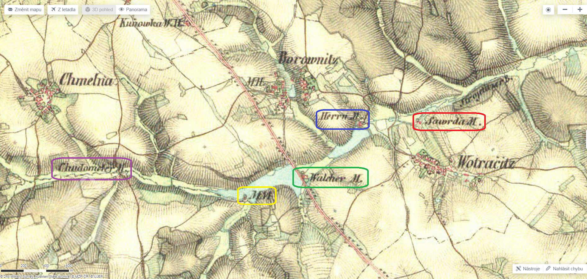 V r. 1838 vlastnil mlýn Joseph Zelenka, v r. 1930 Karel Šindelář, mlýn a pila. Původní č. p. bylo 15.