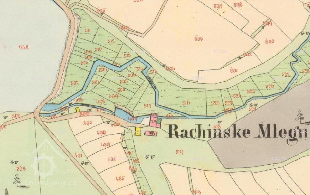 V r. 1930 zde byla Francisova turbína, průtok 0,12 m3/s, spád 5 m, výkon 6 k.
