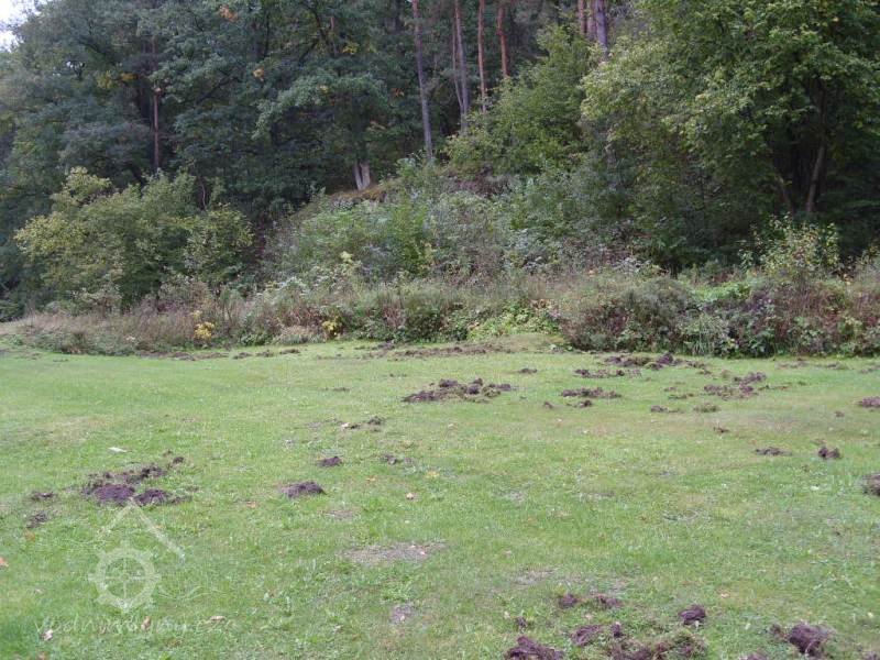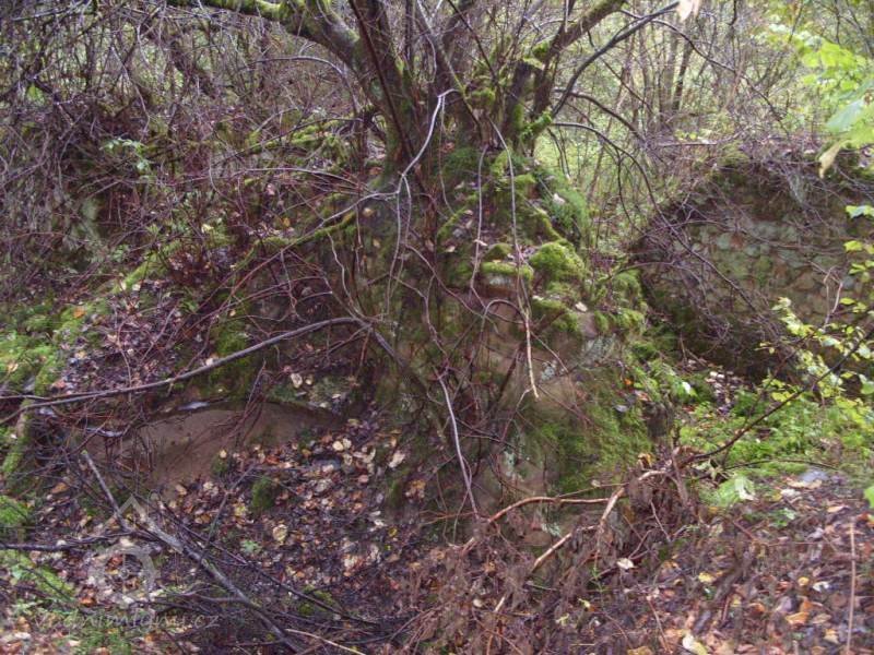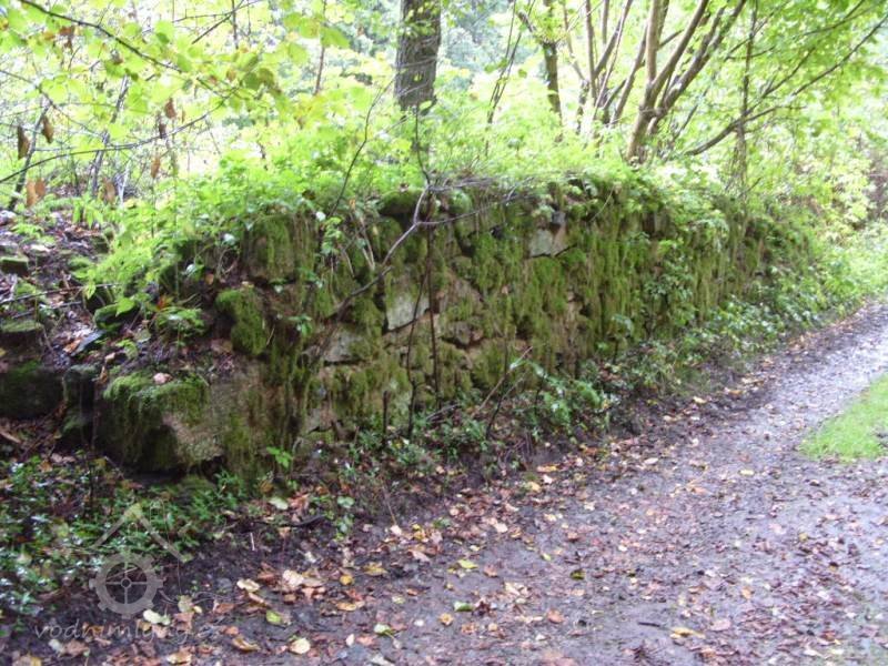 Západně od zřícenin patrné zbytky hráze rybníčku a příkop vodního náhonu.