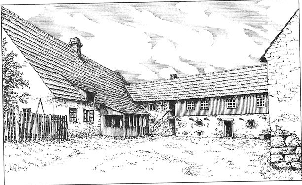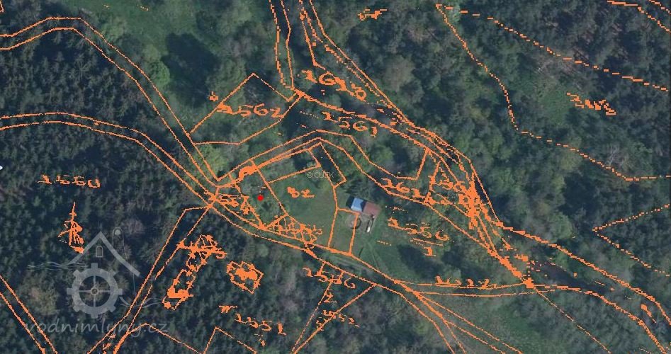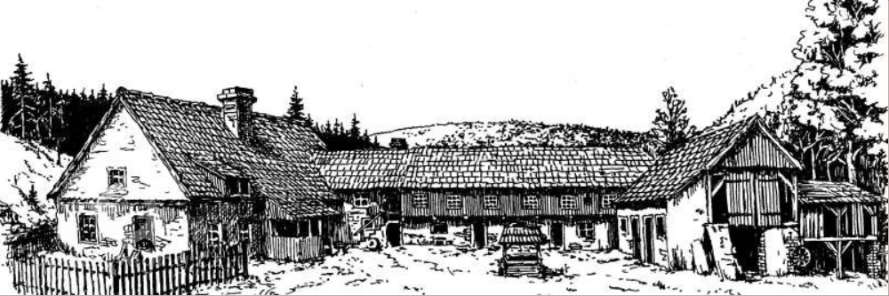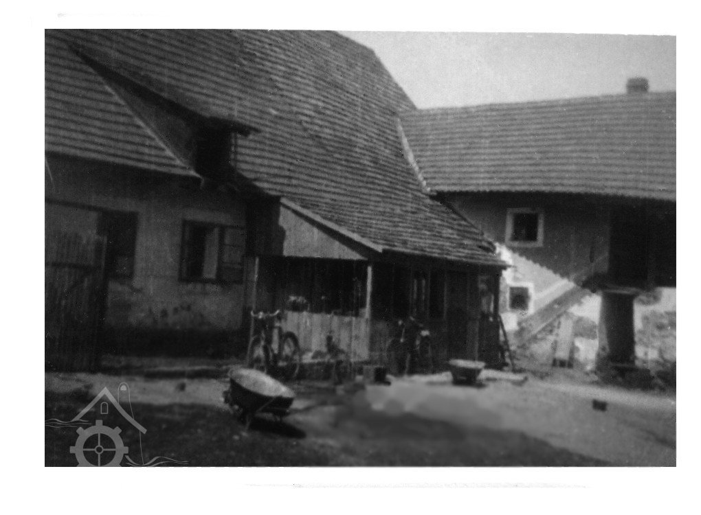 1957: budova o třech místnostech se sklepem a bývalou patrovou dřevěnou mlýnicí, stájí pro 5-6 ks hov. dobytka, vepřínem, stodolou a kolnami