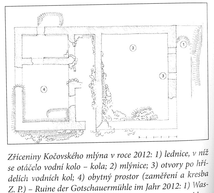 Kočovský mlýn čp.29, lidově nazýván "Gotschomühl" u Kladrub byl součást zaniklé osady Kočov (lidově řečeno Gotscha). Poté co osada pravděpodobně v době po husitských válkách (1436) zanikla, přešla katastrální oblast Kočova na obec Lšelín. Tento mlýn patřil mezi staré mlýny kladrubského klášterního panství. Písemně byl mlýn zmiňován vícekrát v kupních smlouvách kláštera Kladruby. Tak například v letech 1477, 1562, 1629, 1701. Kočovský mlýn byl do roku 1945 v provozu. Poslední majitelkou před vyhnáním v roce 1945 byla mlynářská vdova Anna Schreiber. Poté přišel v létě 1945 Václav Balík (*1916) jako "národní správce". Ve mlýně "hospodařili" novoobyvatelé do července 1947. Později byl kočovský mlýn zcela zbourán. A co z mlýna zbylo? To ukazují mé fotografie v příloze.