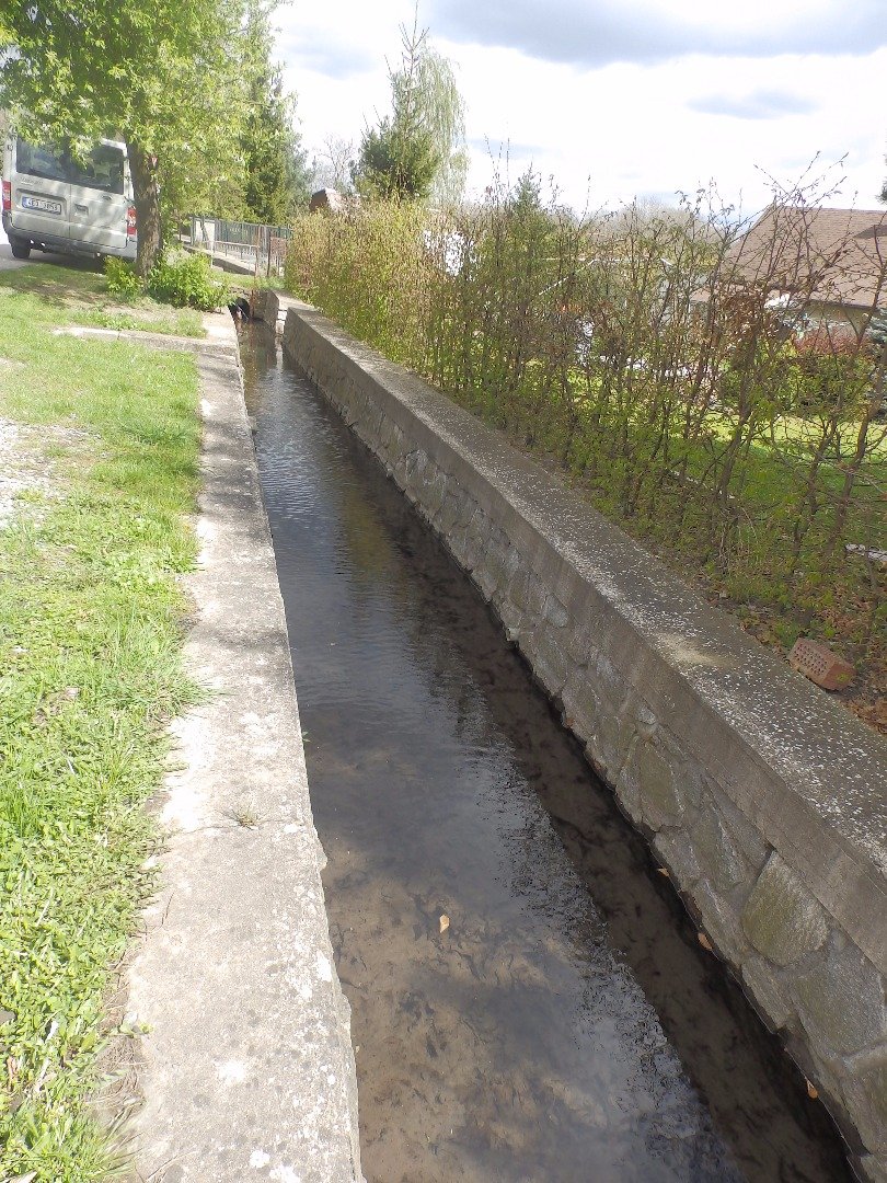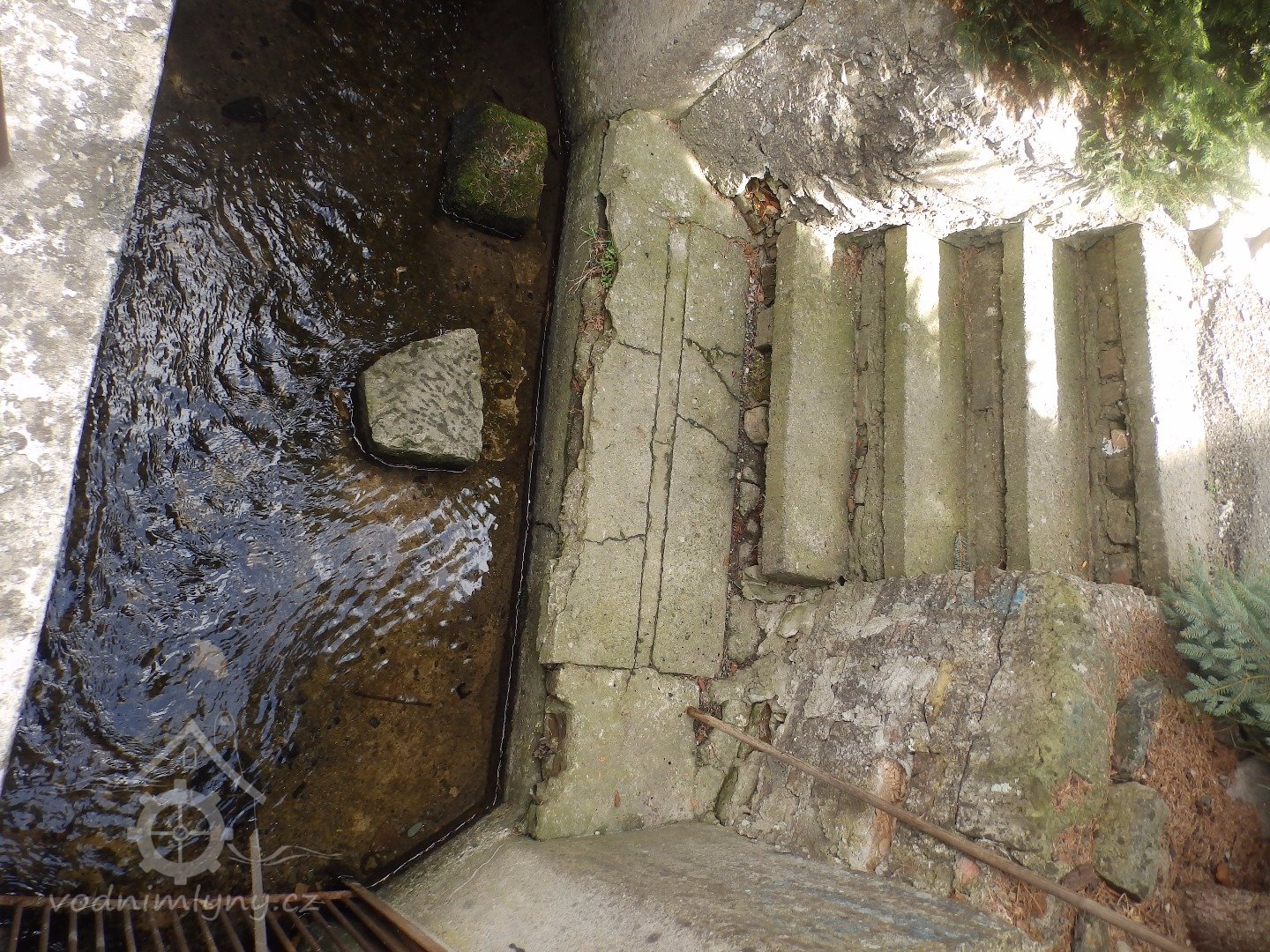 1934 voda tekla pracovním stavidlem o šíři 98 cm na jedno vodní kolo, pro případ odstávky odbočoval z náhonu na kolo vlevo stavidlem o šíři 70 cm jalový odtok, který vodu vracel zpět za výtokem od kola zpět strouhy.