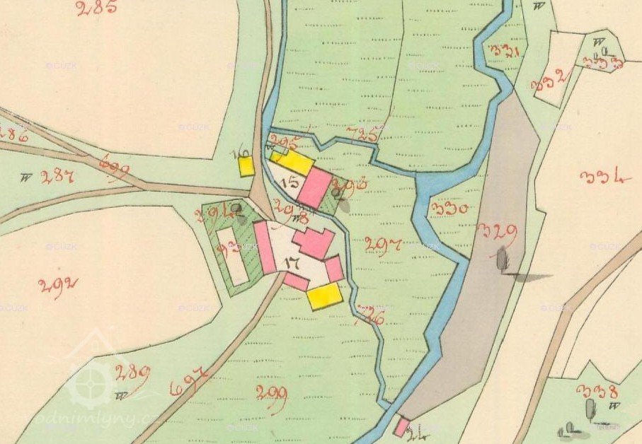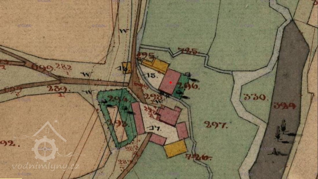 PopisV roce 1930 zde bylo 1 kolo na vrchní vodu, průtok 0,127 m3/s, spád 3,5/4 m, výkon 5,12 HP.