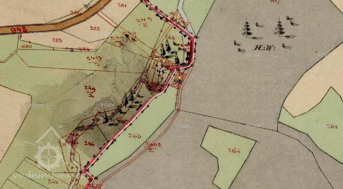 Mlýn vznikl až po roce 1837 - není vyobrazen na historických katastrálních mapách. (RŠ)