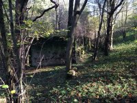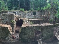 Mlýn na Klenském potoce. Technické vybavení mlýna neexistuje, pouze zachovalé zdivo.