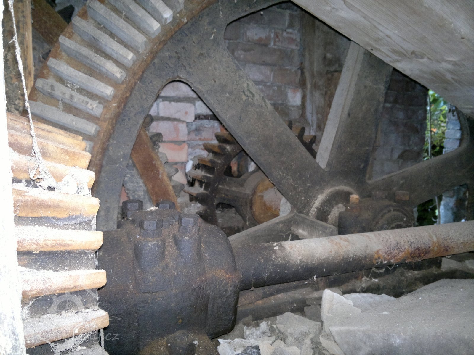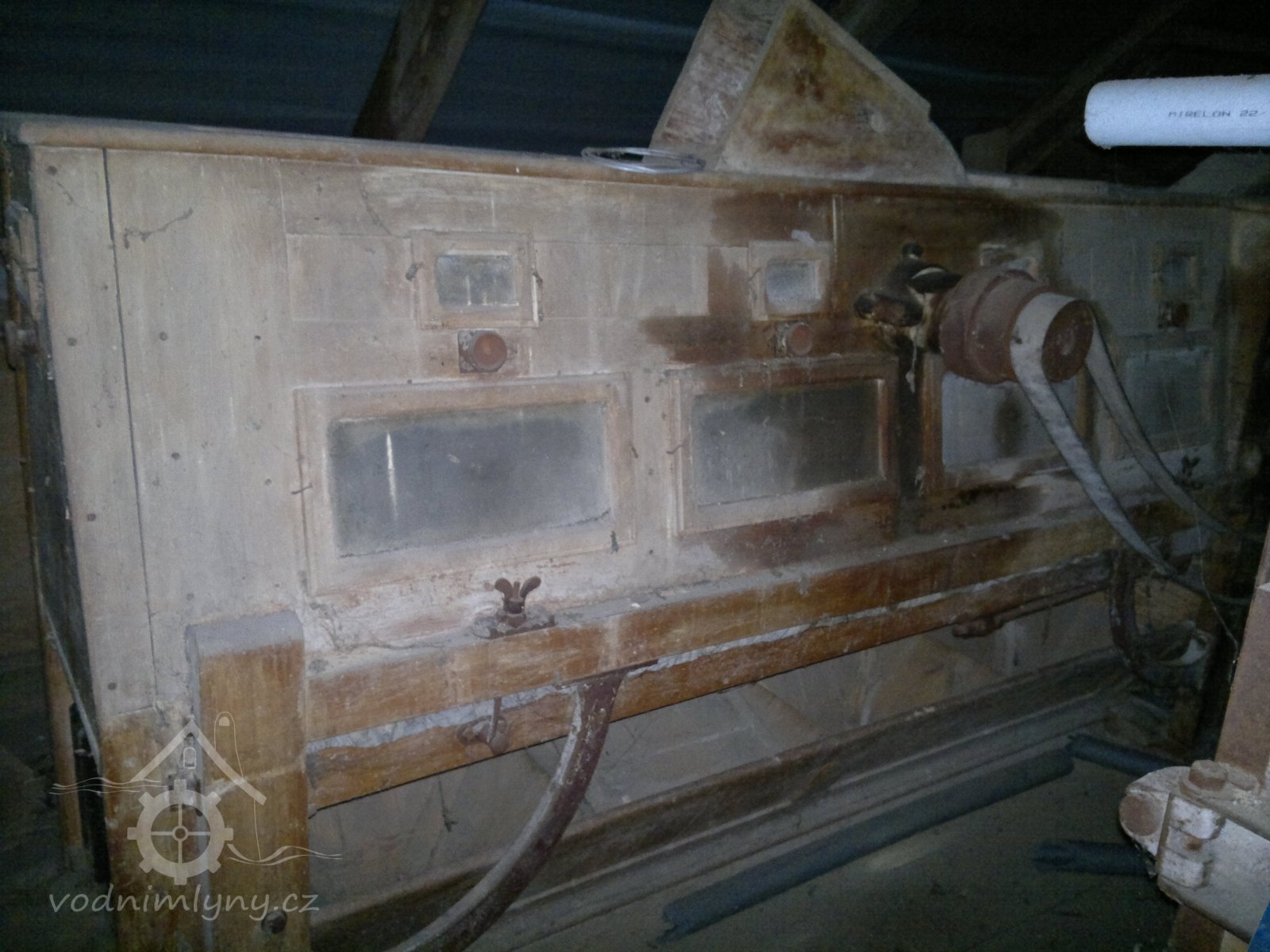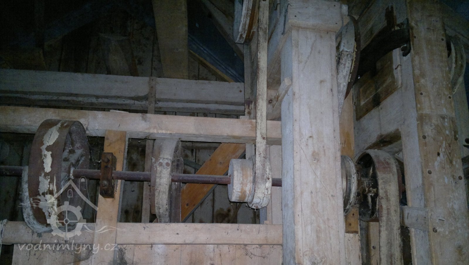 Dřevěná hřídel vodního kola procházela otvorem do podkolí, kde na dřevěných ramenech nesla litinový věnec palečního kola. Jeho zuby (palce) zapadaly do pastorku předlohové hřídele, na jejíž konci je druhé menší paleční kolo litinové a přes pravoúhlý převod přes další pastorek otáčelo hlavní spodní transmisí, uloženou na cihlových patkách. V podkolí je také převod přes polozkřížený řemen na mlecí kameny, sloupy mlýnské hranice, šrotovník a paty kapsových dopravníků. Na prvním (válcovém) podlaží pak nalezneme vzácnou stolici od fa Ganz – Budapešt vyrobenou po r. 1882. Jedná se o tuplovku s dřevěnou skříní. Další dvě dvouválcové stolice už novější, vyrobené po r. 1909 s litinovou skříní, z nichž jedna je zcela jistě s porcelánovými válci, jsou od firem Julius Škrland a spol. – České Budějovice a J. Prokop a synové – Pardubice. Vedle stolic se nachází loupačka periodická se zajímavým systémem posuvu dávkovacího mechanismu přes tzv. „houpačku“. Je zde také kamenné mlecí složení, pravděpodobně s kameny umělými. V podstřeší nalezneme rovinný vysévač dvouskříňový, hranolový vysévač moučný a prachový, triér - koukolník, hlavy kapsových dopravníků, reformu a podstřešní transmisi.