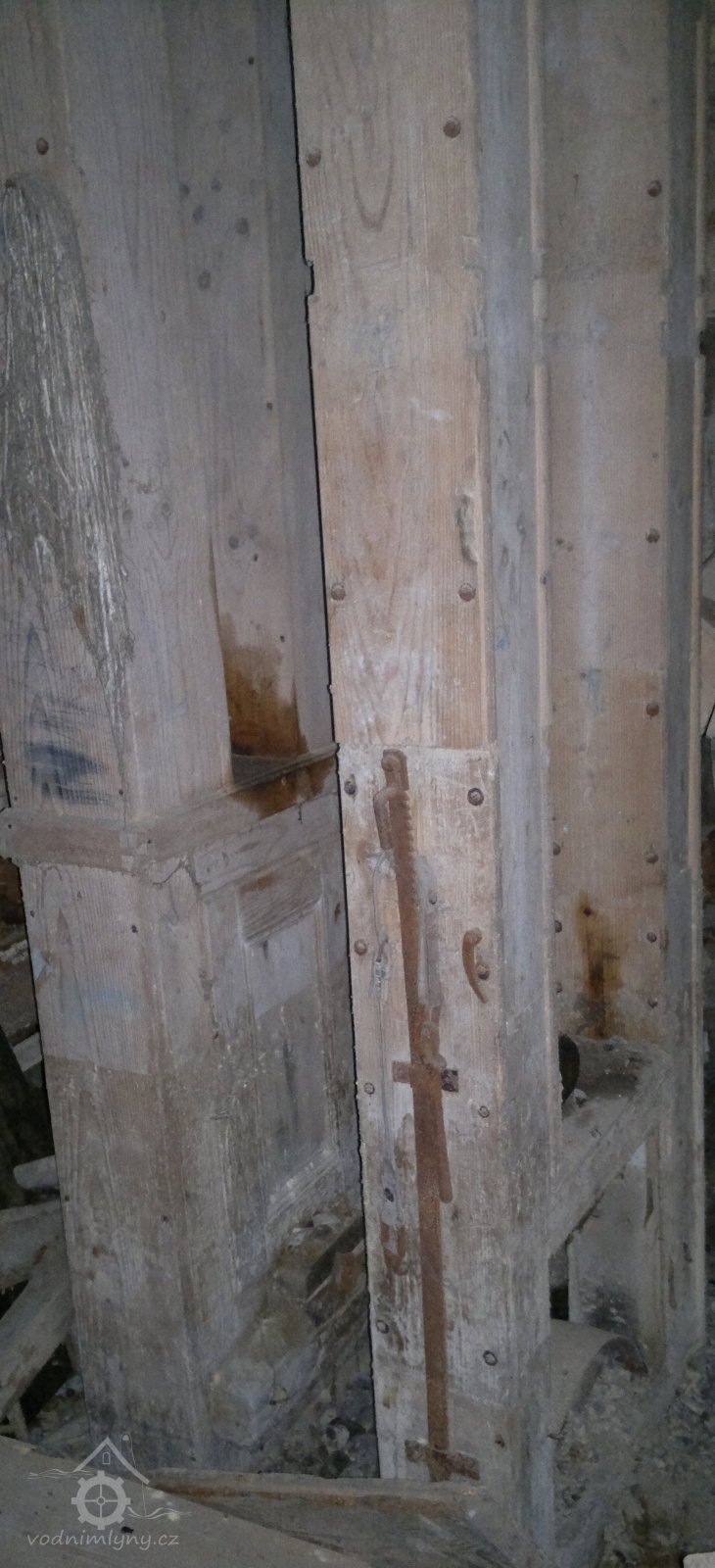 Bylo zde dřevěné vodní kolo na vrchní vodu s plechovými lopatkami.