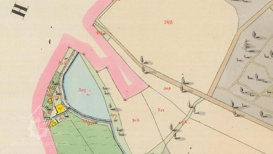 PopisV roce 1930 mlýn pohání kolo na vrchní vodu s průtokem 0.096 m3/s, spádem 3.8 m o výkonu 4 HP.