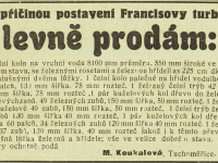 Popis1930: 1 turbína Francis, hltnost 0,082 m3/s, spád 8,5 m, výkon 7 HP