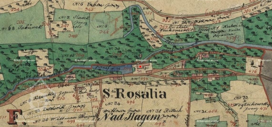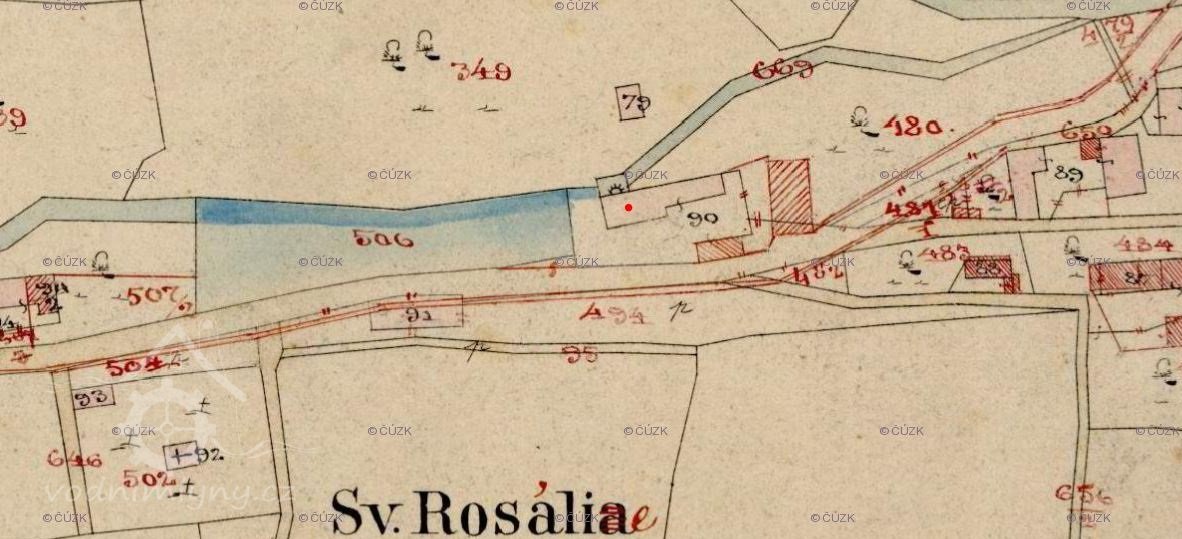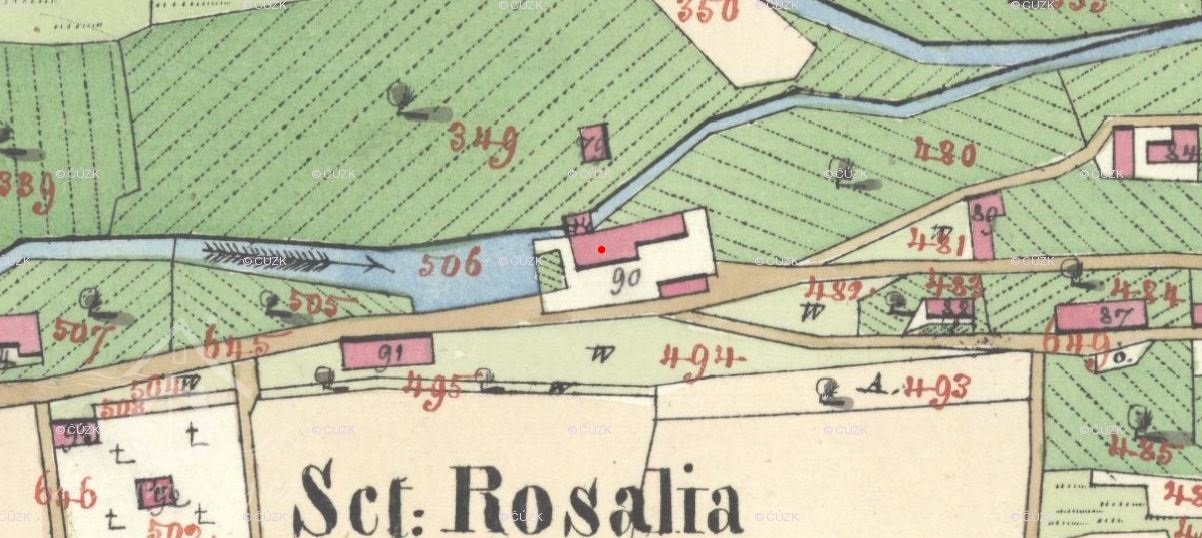 mlýn na Pastvišťatech, u Kadeřábků, pod sv. Rosalií