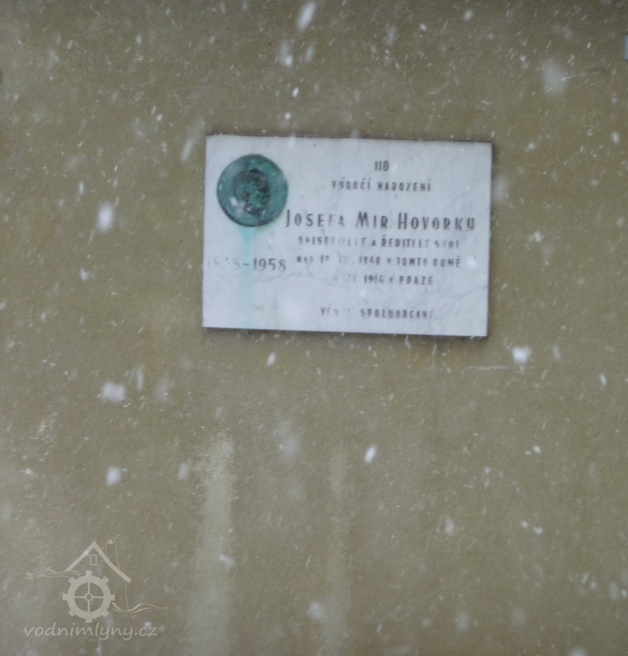 20.8.1848 se ve mlýně se narodil bibliograf, publicista, redaktor a spisovatel Josef Miroslav Hovorka (1848-1914). U vchodu do mlýna je jeho pamětní deska. Jeho ženou byla nemanželská dcera Josefa Mánesa.