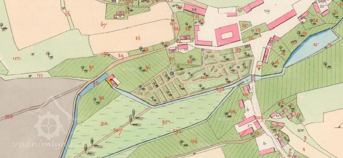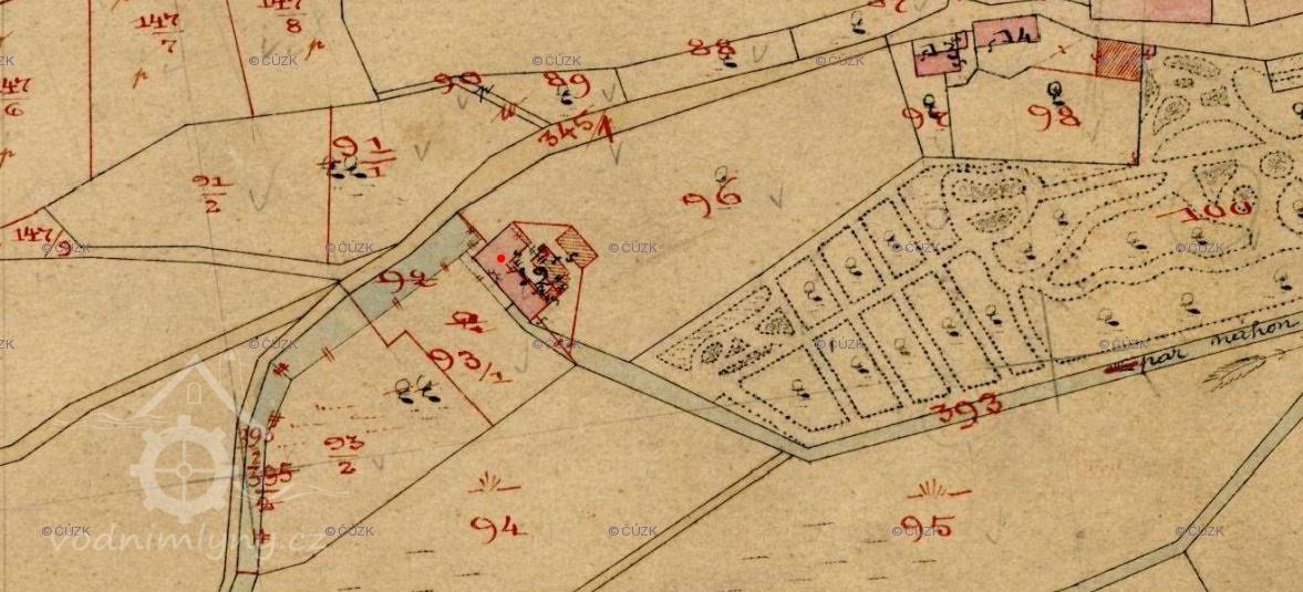r. 1899 - 24. IV. se vkládá právo vlastnické na zrušený mlýn na základě trhové smlouvy na Antonína Vyšína na 1/2 a Karolínu Výšinovou rozenou Kozlovou (babička paní Vančurové) na 1/2