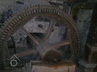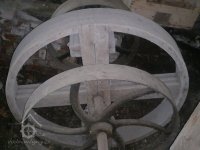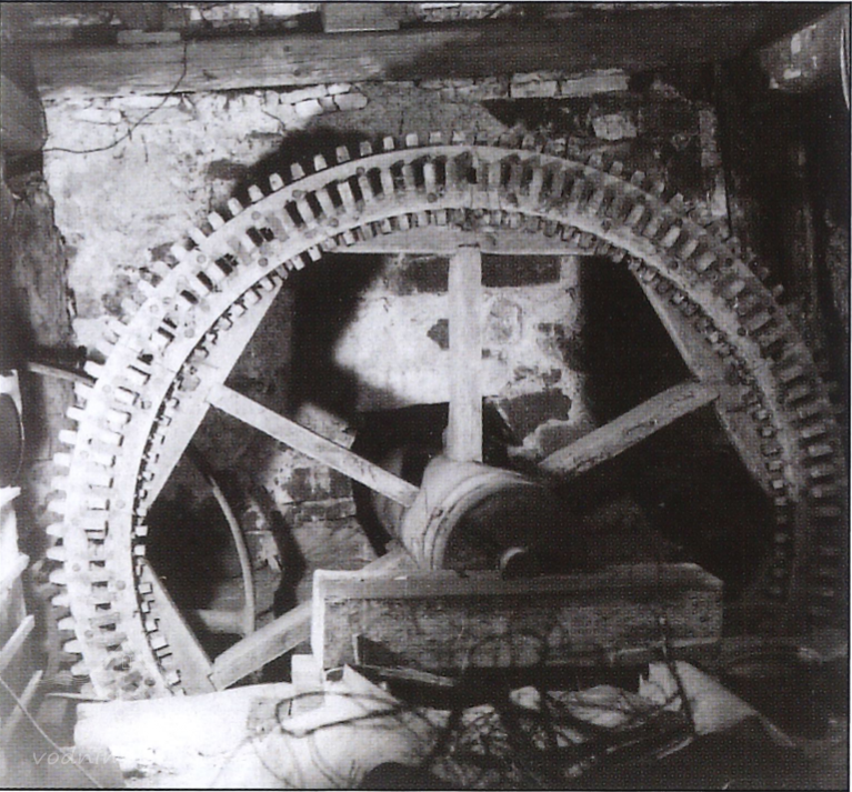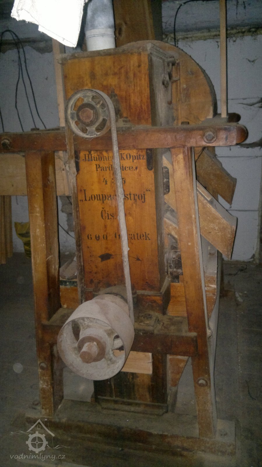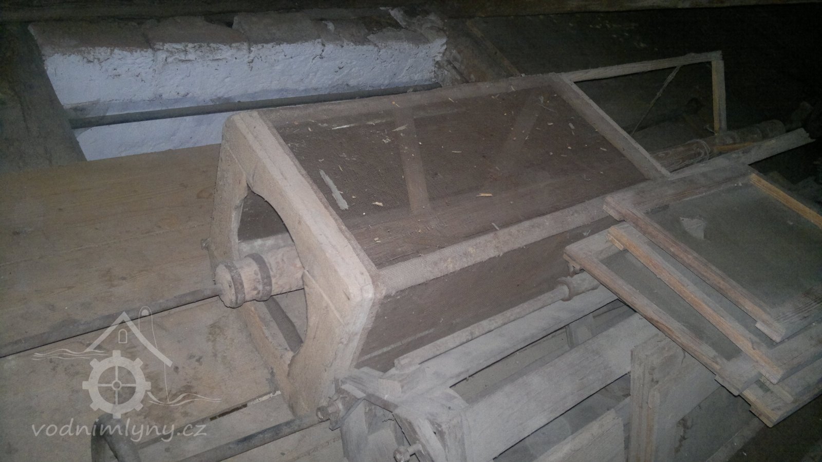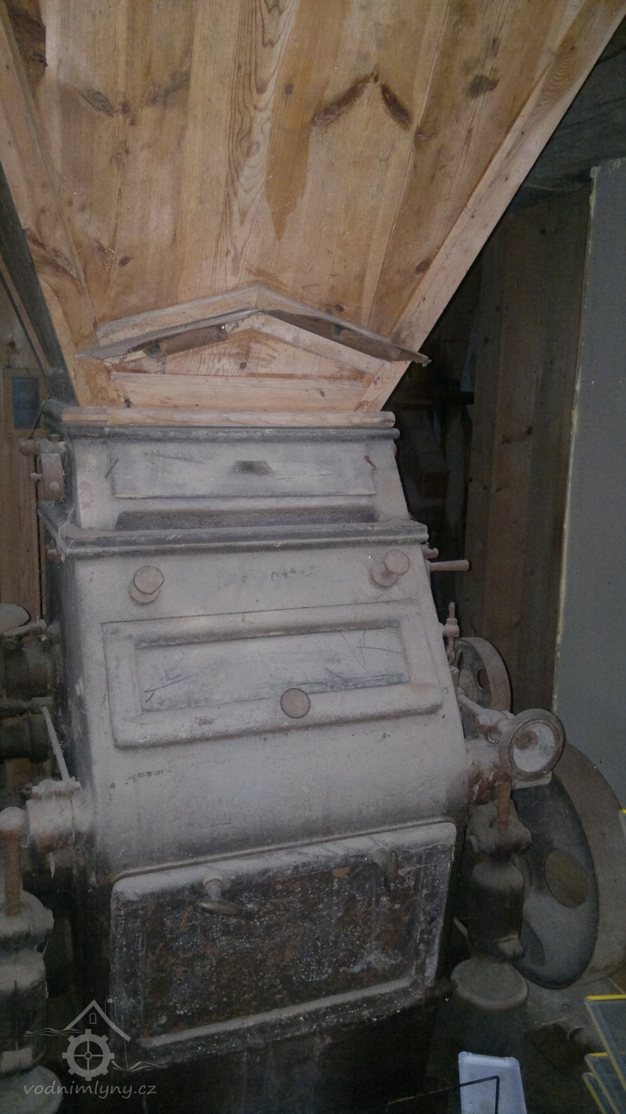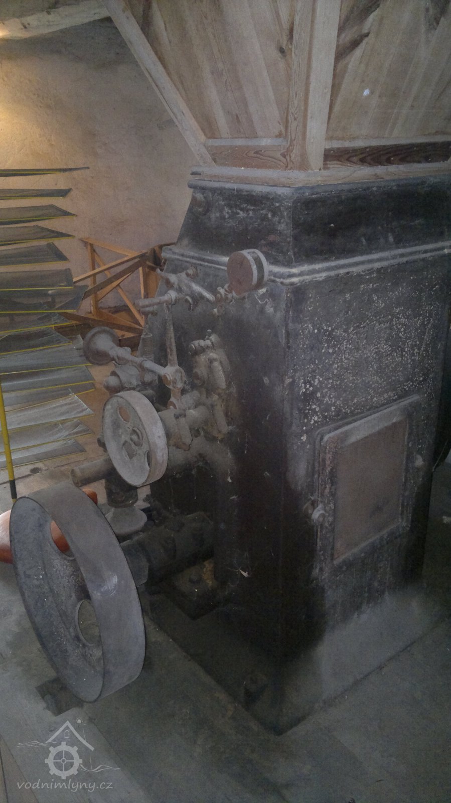 Celodřevěné vodní kolo na vrchní vodu. Zajímavostí bylo jeho umístění v lednici ve spodních prostorách uvnitř mlýnské budovy.