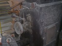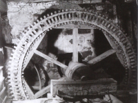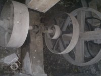Pohon pily - pravděpodobně katru, od mlýnské transmise plochým řemenem přes spojku.