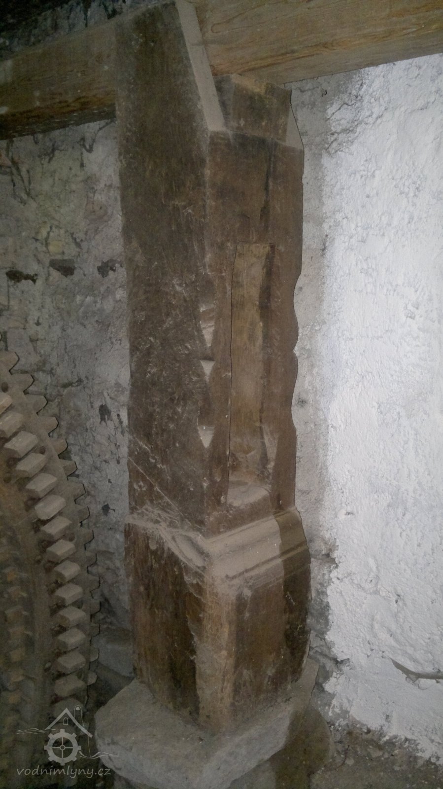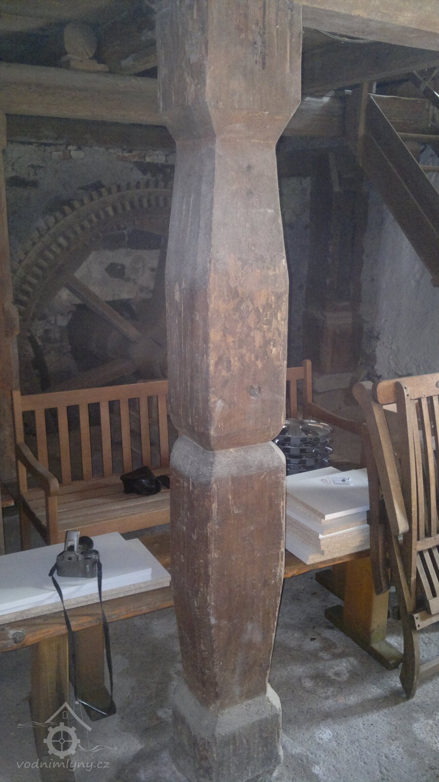 Ve mlýnici krásně tvarovaný sloup, podpírající stropní průvlak (jeho kopie podpírá strop v hospodě U sv. Huberta v Hlinsku-Betlémě)