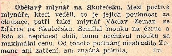 Poslední mlynář Václav Zeman zde mlel do roku 1950.