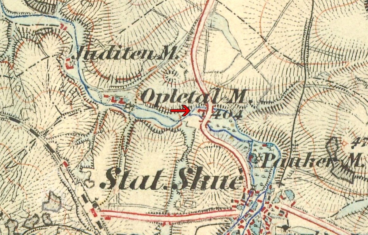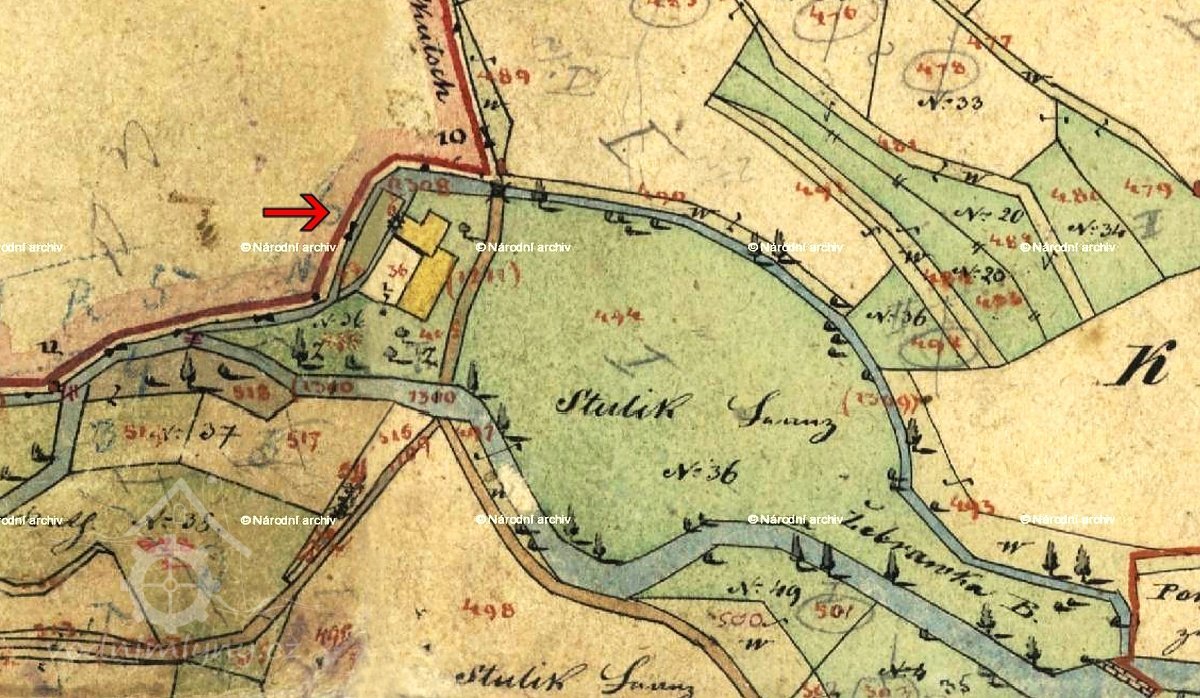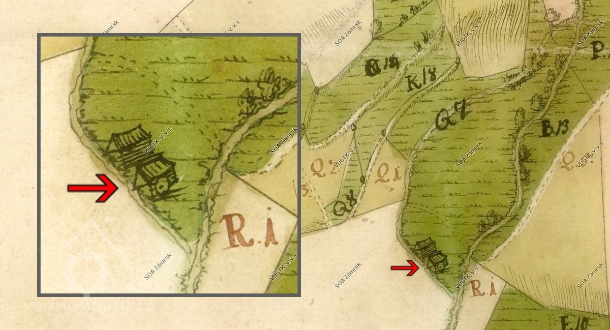 Vodní kniha: "Jáma, ve které jest popsaný kvádrovec osazený a kamením obezděný, jest 1,25 m dlouhá a 85 cm hluboká, štět na dně 25 cm vysoký, pak vše hlínou zaházeno a drny přikryto."