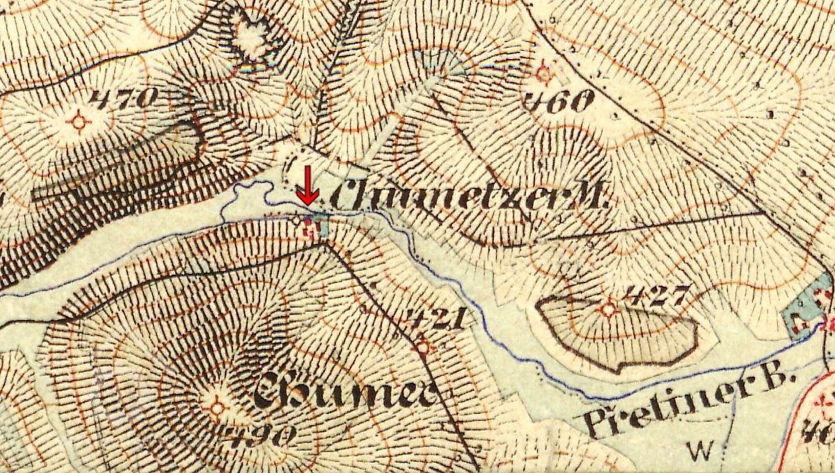 Mlýn vznikl před rokem 1764 neboť je zobrazen již na mapě I. vojenského mapování.