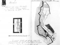 1881 zasazeno normální znamení s letopočtem J 1881 P, 1,26 m vysoký žulový sloup s dubovým křížem 14 m od stavidla z akumulační nádržky a 18,3 m od západního nároží kuchyňského přístavku. Další znamení na jezu.