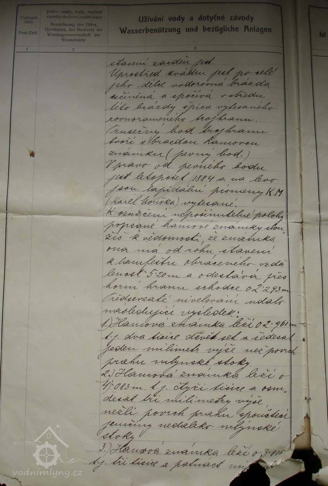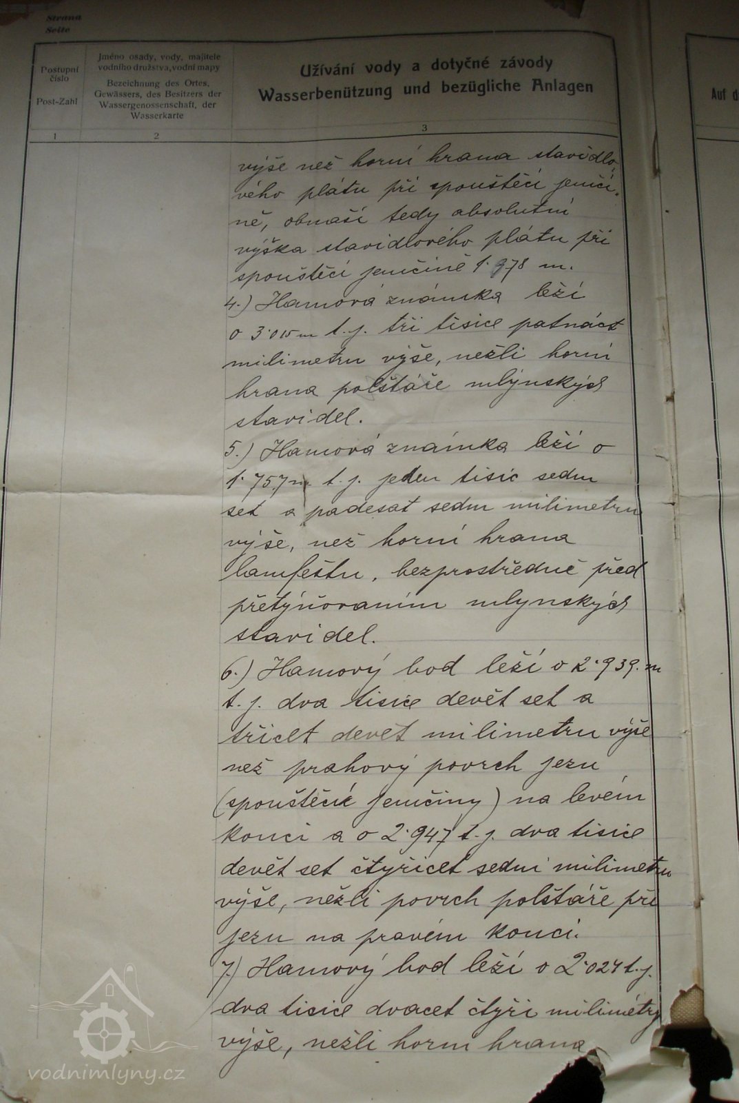 PopisV r. 1930 zde bylo 1 kolo na svrchní vodu, průtok 0,11 m3/s, spád 4,5 m, výkon 4,3 m.