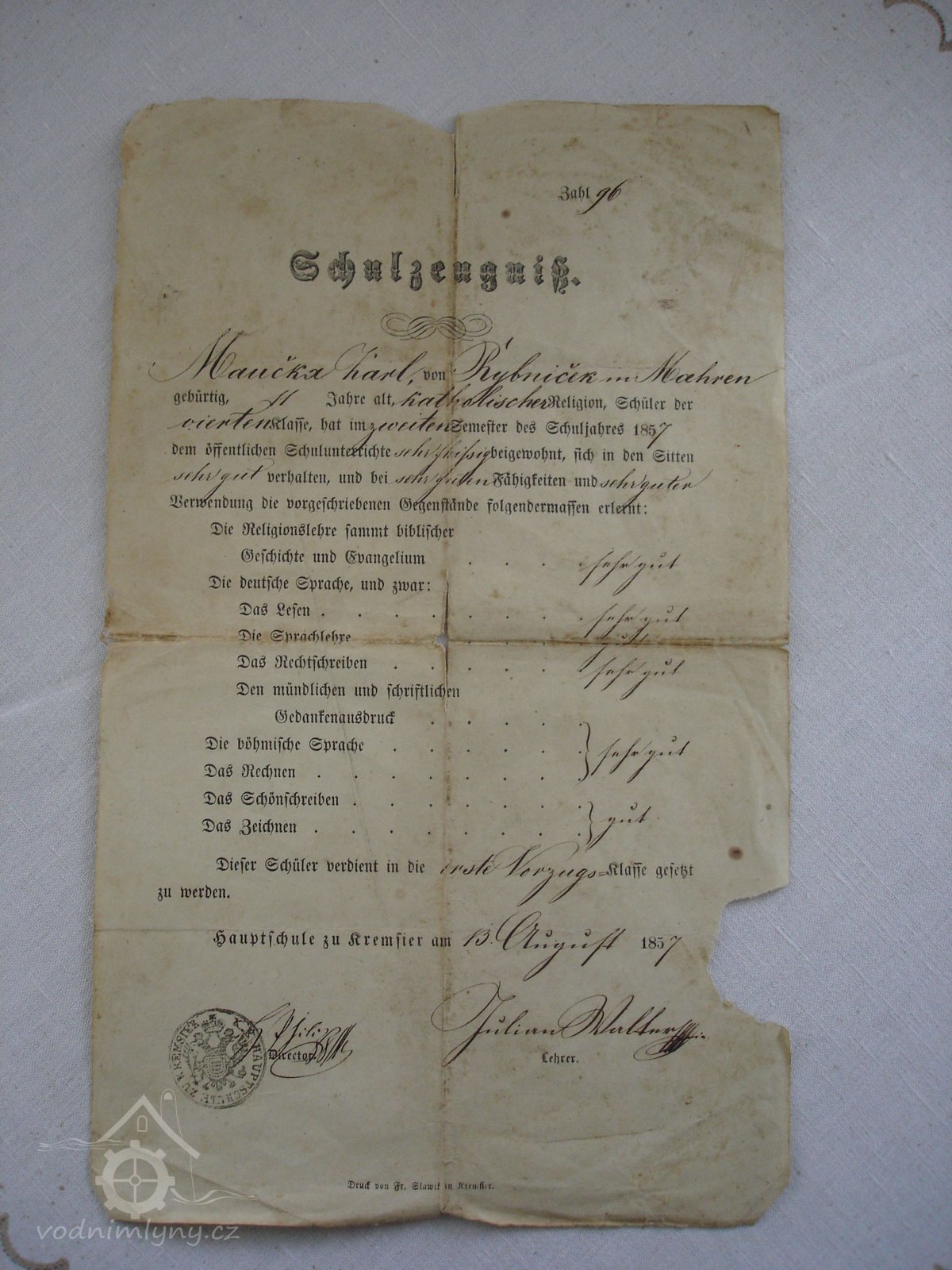 když se dvacetiletý Karel chtěl oženit a ujmout se mlýna musel se nechat soudně zplnoletnit, protože už nežila ani jeho matka.