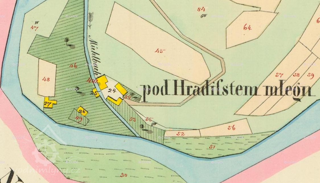 Pracovníci Muzea a galerie severního Plzeňska byli na jaře letošního roku požádáni o odbornou pomoc při zpracovávání populárně cestopisné publikace Havraní kámen z řeky Střely. Při této příležitosti jsme se také zabývali terénním průzkumem mlýnů, kterých na téměř stokilometrovém toku Střely byla celá řada. Pro oblast dolní části řeky, od Rabštejna po soutok s Berounkou byla tato problematika již publikována J. Sklenářem a J. Klemperou, takže jsme obě publikace využili jako základní zdroj informací, které jsme pak doplnili drobnými zjištěními z jiných zdrojů, především z map vojenského mapování, jak Josefského, Františkovo, tak Františko–Josefského1/ a dále ze stabilního katastru, kterými jsme chtěli ověřit polohu mlýnů a jejich začlenění do krajiny. Při porovnávání mapových zdrojů s informacemi ve zmíněných publikacích jsme narazili u mlýnů u obce Dolní Hradiště na poměrně zásadní rozpor. Oba autoři zde shodně uvádějí dva mlýny, a to Šimánkův, který lokalizují k dnešnímu mostu přes Střelu a Chaloupkův mlýn o něco dále po proudu, s tím, že u Šimánkova mlýna citují, sugestivně vylíčenou, zkázu povodní v roce 1872 s poznámkou, že po ní již mlýn nebyl obnoven a zanikl. Při pohledu do stabilního katastru pořízeném v roce 1839, tedy 33 let před avizovaným zničením mlýna, však na Střele pod Dolním Hradištěm najdeme pouze jeden mlýn označený "pod Hradifstem mlegn", (stejný název je v soudobém 2. vojenském mapování, název Chaloupkův mlýn se objevuje až od 20. století), a to v místě dnešního Chaloupkova mlýna v meandru řeky Střely, šikmo přes nějž je veden mlýnský náhon od dřevěného splavu na řece. Vlastní mlýn podle stabilního katastru tvořily čtyři dřevěné (spalné) budovy kolem náhonu a dvě další stály v prostoru mezi náhonem a řekou. Jediný mlýn je rovněž zakreslen ve 3. vojenském Františko–Josefském mapování z let 1877–1880. Kam se nám tedy Šimánkův mlýn zničený povodní v roce 1872 ztratil? Pustili jsme se tedy do bližšího rozboru textu publikací, které jsou většinou pregnantní citací starších děl, bohužel bez příslušných odkazů. Zpravidla využívají informace uváděné již regionálním historikem V. Kočkou, ale i v jeho práci se mohly objevit některé nesrovnalosti. Mohli jsme předpokládat záměnu některých informací ještě s mlýnem pod Borkem. A tak bychom došli až k fantastické hypotéze, že totiž Šimánkův mlýn vůbec neexistoval a pak samozřejmě nemohl být zanesen ani v žádných mapách. Ale to by byla jen další neseriozní spekulace a hlavně neseriozní hra s prameny. Jak to tedy s tím ztraceným mlýnem bylo doopravdy?