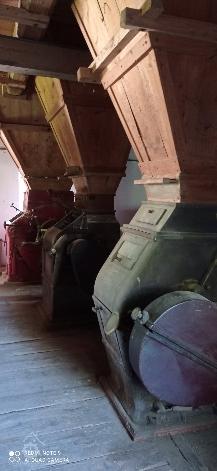 Ve mlýně jsou některá zařízení - násypka, reforma, dále stroje na čištění obilí, loupací stroj, loupací stolice, šrotovník.
