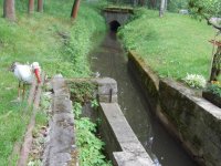 Vodní náhon odbočuje z potoka Dřevíče (též zvaného Olšavka) asi 255m severovýchodním směrem od mlýna. Hladinu vodního toku vzdouvá torzo jezu, koryto náhonu je zpočátku vyzděno pískovcovými kvádry, pak pokračuje jako přírodní, před mlýnem je betonové ústí se stavidlem a jalovým korytem, kterým odtéká voda nevyužitá k pohonu mlýnských zařízení.